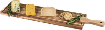 Serve a selection of your favorite appetizers atop a gorgeous panel of stained acacia. A food-safe finish, tapered handle and corresponding faux leather strap complete the ensemble, forming our rustic take on the classic tapas board.