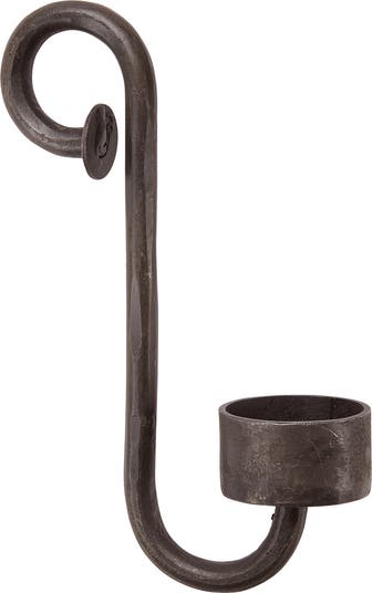 perfect for displaying tealight candles, this iron hand-forged s hook comes in a natural finish. the perfect companion to a range of tag vases and hurricanes. hook allows for a floating tealight to flicker against the textured walls, creating a beautiful and inviting scene.