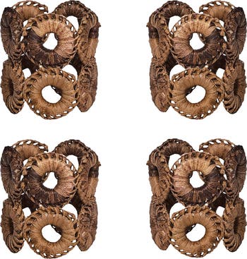 Handwoven from natural abaca fibers in a texture-rich pattern, these napkin rings make it easy to create a layered tablescape that's as chic as it is warmly welcoming.