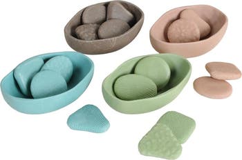 - Includes 4 natural-toned bowls and 16 textured stones (4 per bowl)