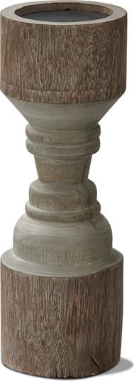 Rustic Turned Pillar Candle Holder Antique Bronze Wood Stand