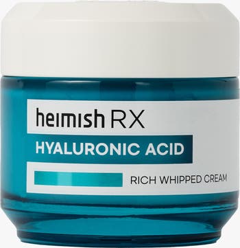 - The luxurious textured moisturizer of Heimish RX Hyaluronic Acid Whipped Cream deeply hydrates and reinforces the skin barrier without feeling heavy or greasy. Infused with low molecular weight hyaluronic acid, it attracts and retains up to 1,000 times its weight in water, delivering an immediate plumping effect and long-term hydration.