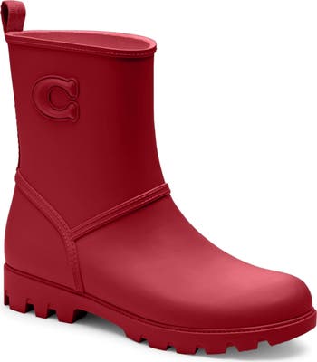 Wet, rainy weather is no match for this lug-sole rubber boot complete with a tonal logo monogram on the shaft.