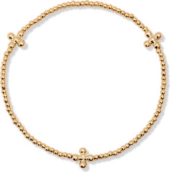 Bubbly cross stations catch the light on this stackable beaded stretch bracelet plated in warm 14-karat gold with a high-shine finish.