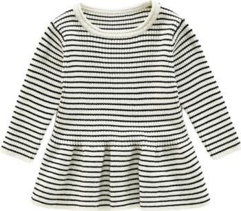 Narrow stripes and a ribbed texture add plenty of pizzazz to this long-sleeve cotton dress.
