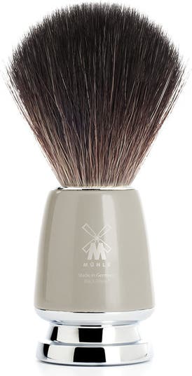 RYTMO is a popular choice within our INTRO range and it's easy to see why; the design is both eye-catching and timeless. With a classic conical form, interrupted by distinctive lines at the chrome plated top and base it is like a measured musical composition. Made from high-grade resin, this RYTMO brush delivers on both durability and beauty. Presented in classic black with chrome metal highlights, the process of creating this shaving brush begins with each handle being turned out of solid resin rods. All individual pieces are then polished in several passes, giving the surface its characteristic gleam and securing its beauty for many years to come. Black Fibre: With its dark colouring, softness and quality, this synthetic black fibre resembles natural badger hair. However, this particular fibre is more robust and durable, and at the same time slightly softer at the tip than the natural material. The MÜHLE manufactory’s very own innovation makes it possible to whip up a particularly creamy shaving lather. The amount of effort required for cleaning and drying is significantly lower. Measurements: Width: 35mm Height: 105mm Ring Size: M - 21mm Vegan: Yes