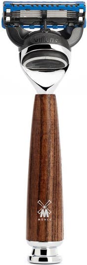 RYTMO is a popular choice within our INTRO range and it's easy to see why; the design is both eye-catching and timeless. With a classic conical form, interrupted by distinctive lines at the chrome plated top and base it is like a measured musical composition. The Material: Made from Steamed Ash, the wood is briefly heated to a very high temperature to ensure it attains a high water-resistance. This process also accentuates the woods beautiful grain and gives the Ash is deep final coloring. The wood is then treated with oil, to further guarantee the product's longevity. The Razor: Simple and safe handling, Gillette Fusion is ideal even for newcomers. It ensures a close and gentle shave with its five-blade system and precision edging blade located on the back of the cartridge. Replacement blades are available from retailers worldwide.