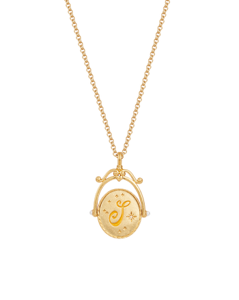 Our vintage style gold spinner initial necklace makes a wonderful gift or treat yourself as an act of self-love. Set in 22ct worn gold brass, on one side you'll find your 'S' initial engraved in a beautiful scroll font, on the other side, a hand-painted sunflower. Representing love and longevity, it will take centre stage in any jewellery collection.