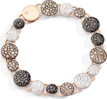 Pavé discs featuring 106 brown diamonds, 106 black diamonds and 131 white diamonds station this link bracelet crafted from white rhodium-plated 18-karat rose gold.