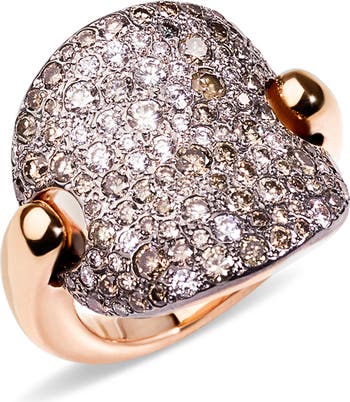 A glittering shield of brilliant diamonds in white and brown creates a striking ombrè effect across this Italian-crafted ring made from high-polish 18-karat rose gold.