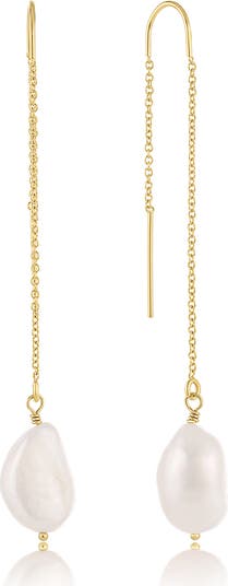 Each pair features a luminous organic pearl that catches the light beautifully as the threader design sways gently with you.