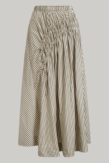 Cut from striped cotton, the Sabine Skirt offers a structured A-line fit with clean pleats. A versatile style that transitions from casual to polished.