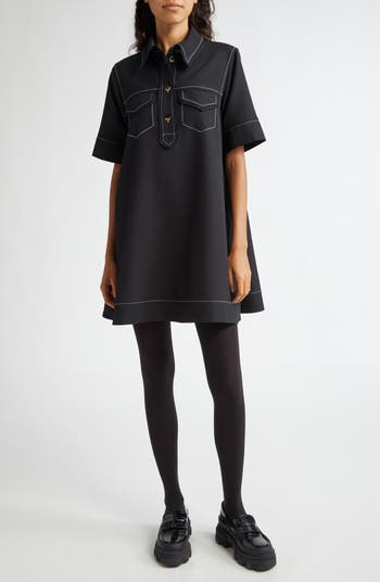 Topstitching traces the polished details of leggy dress cut in a swingy fit that delivers laid-back charm.