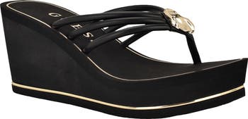 Take your vacation style up a notch with this breezy platform wedge sandal topped with perfectly polished hardware.