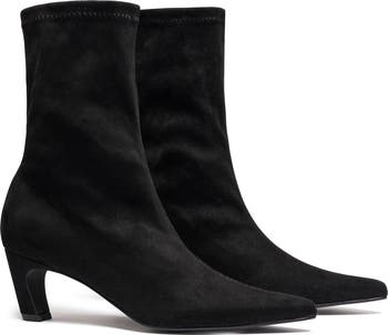 These Sacha boots by Therapy feature are designed for a comfortable sock-like fit. Featuring a modern sculptural heel and pointed toe, they deliver an edgy yet refined look to your outfit.
