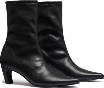 These Sacha boots by Therapy feature are designed for a comfortable sock-like fit. Featuring a modern sculptural heel and pointed toe, they deliver an edgy yet refined look to your outfit.