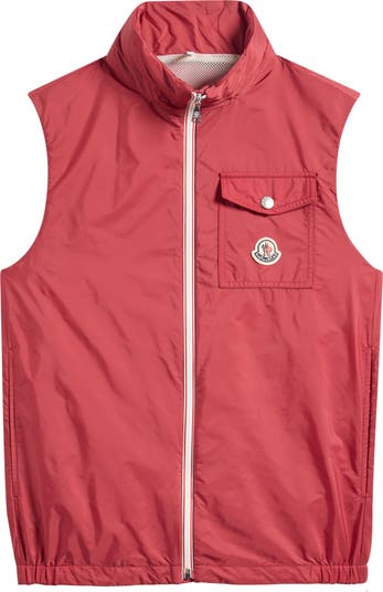 Known for outerwear with pedigree, the label pares things back here with a lightweight, tot-sized vest in durable nylon that reads clean and current. The stand collar tucks away a hidden hood, a snap-flap chest pocket adds utility and the signature cockerel patch plus the bold contrast zip bring a sporty edge.