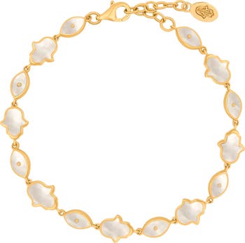 Sacred Light Mother of Pearl Evil Eye & Hamsa Gold Bracelet