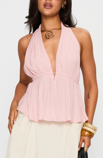 This drapey halter top has fully adjustable ties at the neck and back for a perfect fit that looks effortless.