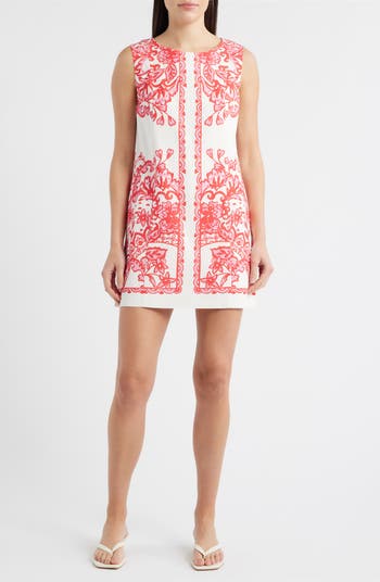 A tropical-inspired print brings vacation-ready appeal to a shift-style romper that elevates the resort romance with its fun print, stem-baring length and side slits.
