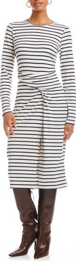 Sadie Stripe Side Drape Midi Dress