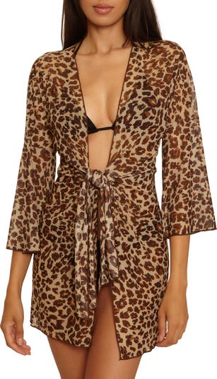 Layer your beachy look with this sheer mesh cover-up that ties in the front and has plenty of stretch for an easy fit.