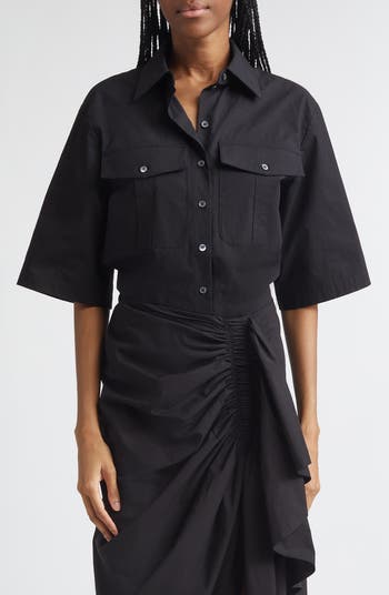 An oversized take on safari style, this camp shirt features large pleat-centered patch pockets and a washed cotton-poplin fabrication that’s soft yet crisp.