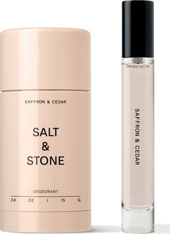- Saffron & Cedar Deodorant (2.6 oz.): an award-winning, aluminum-free deodorant formulated for 48-hour protection. Prebiotics help neutralize odor while seaweed extracts moisturize the skin
