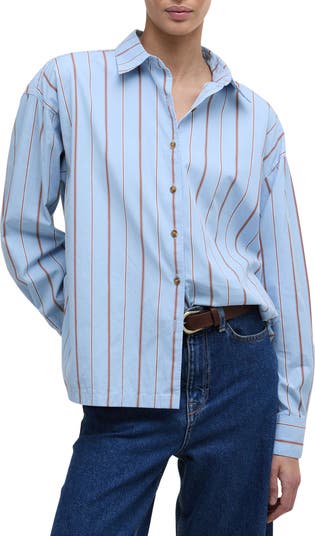 Dropped shoulders add a bit of ease to the slim fit of this button-up cut from smooth, breathable cotton accented with crisp stripes.