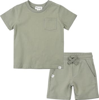 Keep baby comfy in this essential set featuring a short sleeve cotton shirt paired with elastic-waist shorts.