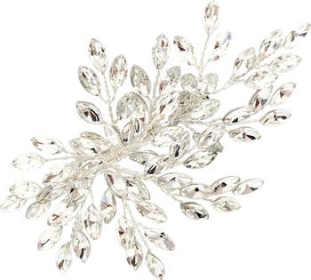 Cap your dream look with a sparkling sprig of marquise crystals set in a stem of 14-karat gold plate and hand-wired to a flexible clip. Experiment all you want before the big day, it sits perfectly with any hairstyle, anywhere on the head.