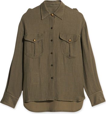 Luke women's military shirt blends the safari jacket's charm with linen's lightness and viscose's fluidity. Front pockets and soft construction reflect Fortela's vintage taste and artisanal quality. A refined, timeless piece for those who love freedom and natural style. The garment embodies conscious style, material quality, and sartorial craftsmanship.