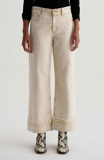 Frayed edges and a faded wash bring an effortlessly cool look to these cuffed wide-leg jeans made from nonstretch Italian denim.
