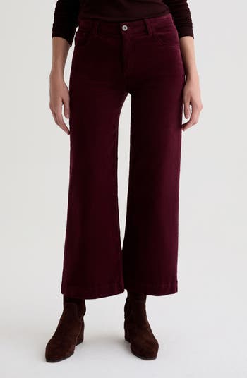 Add soft texture to your cool-weather outfits with these mid-rise corduroy pants featuring trendy wide legs that end at the ankles.