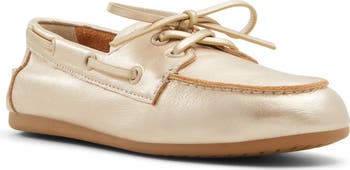 Tonal laces and a streamlined profile create a modern aesthetic on a leather boat shoe grounded by a grippy sole.