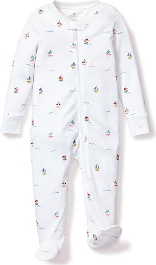 Pima cotton means breathable and soft comfort in this nautical-print footie that has a snap-tab chin guard and a convenient front zipper for easy changes.