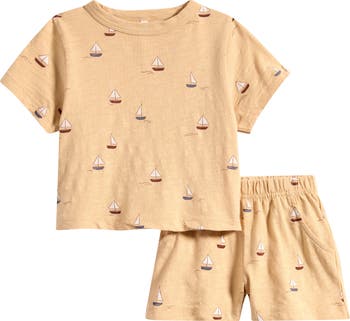 Baby's warm-weather rotation is complete with this fresh, breathable cotton set featuring a sailboat-patterned T-shirt and a pair of matching shorts.