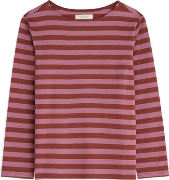 Bold stripes punctuate a soft organic-cotton top fashioned with a boat neck and a slouchy profile ideal for your relaxed lifestyle.