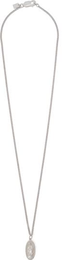 A finely detailed saint medallion anchors this sterling-silver pendant necklace suspended from a polished curb chain.