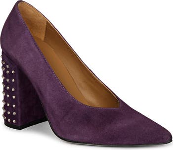Sparkly stones cover the block heel that boosts this beautiful suede pump into a league of its own.