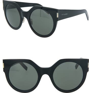 - - Style: Round - Frame Color: Shiny Black - Lens Color: Gray - Size: 52-24-140mm (eye-bridge-temple) - Frame Material: Acetate - 100% UV protection - Made in Italy Proposition 65 is a California regulation that requires special warnings to be presented to customers if a product contains certain quantities of chemicals or toxicants known to the State of California to cause cancer, birth defects, or other reproductive harm.