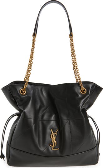 Tonal topstitching hightlights the signature patchwork of this roomy lambskin-leather bag fashioned in a shopping bag-inspired design with drawstrings to expand or contract the silhouette. An iconic monogram and pull-through strap complete the look.