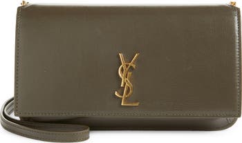 Carry just the necessities in this calfskin shoulder bag featuring YSL monogram hardware and a sleek, elongated silhouette designed to fit your phone.