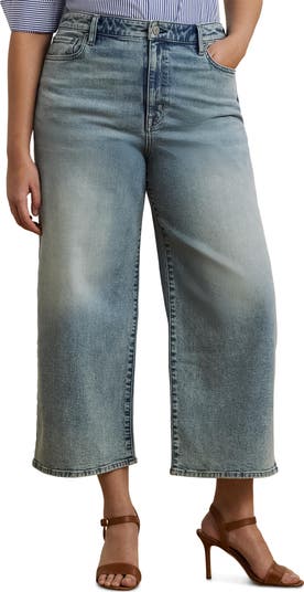 Wide ankle-grazing hems and a touch of comfortable stretch enhance the relaxed fit of these faded jeans.