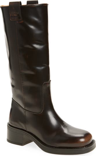 Give your city look some equestrian flair with this chunky round-toe boot designed in a traditional riding style with a structured shaft and light distressing