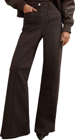 Patch pocket jeans are popping on the trend report, and a wide-legged option offered in a chocolate brown hue is clearly a winning way to own the look.