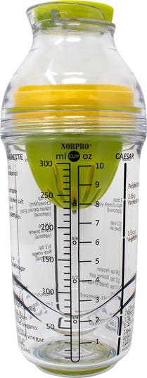 The Norpro Salad Dressing Maker with Citrus Juicer and Herb Grinder makes it easy to prepare fresh, homemade salad dressings. Featuring an integrated citrus juicer, herb grinder, and recipe measurement markings, it allows you to juice, grind, and mix all in one container. Ideal for vinaigrettes, marinades, and sauces, this dressing maker simplifies prep and cleanup.