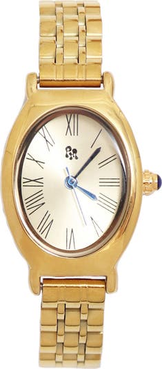Roman numeral markers add to the timeless appeal of this sleek oval watch with a goldtone plate.