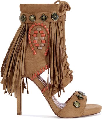 SALGADO-TAN FRINGE STILETTO SANDAL BOOTIE - TAN / 8 / STILETTO