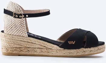 Salina: low wedge ankle strap espadrillesA low wedge, a delicate ankle strap and a crossed open toe. These elegant and comfortable canvas espadrilles sit on a sturdy 2” heel and a comfortable, natural jute wedge. Their pretty cross-band toe box will turn heads. Made of 100% organic canvas and natural jute, they also feature a soft, padded innersole for extra comfort. Step out in style with Salina.